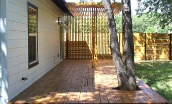 You may occasionally see our groundskeeper Sal who lives just two houses down pulling some weeds in the yard or making sure the yard is clean and neat. He has been in San Antonio his whole life and an absolute joy to share stories with.
