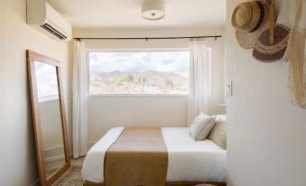 There is one bedroom with magical views and Casper bedding, as well as a full size pullout bed with memory foam mattress in the living area. The space works well for a couple, small family, or close group of 4. Each room has it's own A/C & heater for your comfort.