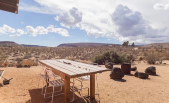 Casa Flamingo is a bright and airy cabin, perfect for a romantic desert getaway, weekend with close friends, or peaceful work-from-home stay. Enjoy an updated mid-century homestead on 5 acres of desert landscape, where views abound. Local hiking rivals the JT National Park (without the crowds) - 600 acres of public land offers free hiking, ATV-ing, camping, bouldering, or whatever you'd like to do in solitude.
