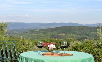 Both apartments have their private entrance and outside area with chairs, table and loungers. It is only 15 km from Florence. Thanks to its happy location (265 m above sea level), it has a very pleasant climate and opens up generously to the surrounding vineyards and olive groves. It offers our guests a beautiful and still untouched landscape, the prerequisite for offering our guests a comfortable and relaxing vacation. Organic olive oil is produced. A spacious garden with olives and fruit trees, as well as a vegetable garden are available to guests. A panoramic view to Florence with the cathedral dome is at your feet. The property is enclosed by a hedge and has a large covered parking space. The new swimming pool also offers the longed-for refreshment on hot days.