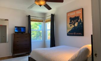Amenities: washer/dryer, climate-controlled heat and A/C, HEPA air purifier, comfy Queen bed with luxury linens, blackout curtains, hardwood floors, private deck, new ceiling fans, remodeled bathroom with rain shower-head, L-shaped leather couch, flat-screen TV, DirecTV with HBO/Showtime/Cinemax, free Netflix, and unlimited 500/500 Fiber Internet