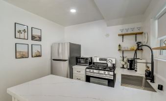 Come stay in our trendy, newly-renovated first floor apartment in historic Mission Hills in San Diego. The unit features brand a top of the line kitchen & dining area, massive rainfall shower head & sahara tile feels like a 5 star resort. Large sliding glass doors in living area and pull out sofa for additional guests that comfortably sleeps four!