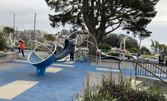 Lovely green park right across street; quick acces to Golden Gate Park and ocean. Short drive downtown.