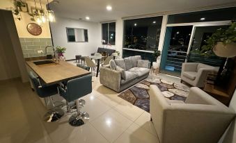 Spacious apartment with 70 square meters. It features a large living room and kitchen, a laundry room, two bedrooms, and two bathrooms. A 50-inch Smart TV with cable and high-speed internet is included. The kitchen is fully equipped with all necessary utensils. There is a dedicated workspace with a built-in wireless charger on the table. The refrigerator has a water and ice dispenser. Hot water is available in all faucets.