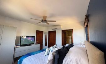2 bedrooms: 2 bunk beds and 1 queen bed