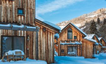 Cosy, comfortable resort "Kreischberg". Below St. Georgen, in a sunny position, 500 m from the skiing area, 50 m from the river. For shared use: park with lawn for sunbathing, biotope, indoor pool heated (9 x 13 m, pool opening hours: 08:00-20:00). In the complex: reception, restaurant, bar, breakfast room, WiFi, sauna, relaxation room, spa area, table tennis, sun terrace, central heating system, washing machine (for shared use, extra). Breakfast and half board possible. Central parking spaces. Grocery 1 km, restaurant 100 m, café, railway station "Murtalbahn" 300 m. Chair lift 500 m, gondola lift, skisport facilities, slopes, ski rental 300 m, ski school, children's ski school, cross country ski track 200 m. Nearby attractions: Bierstadt Murau 8 km. Well-known ski regions can easily be reached: Kreischberg 500 m. Well-known lakes can easily be reached: Badesee Stadl 10 km. Hiking paths: Frauenalpe 15 km, Stolzalpe 12 km. Please note: car-free holiday complex. Suitable for families, baby equipment (extra). The photo is just an example. All houses/apartments are individually designed/furnished. Sauna open daily from 3:00 pm until 8:00 pm. ATTENTION: SUMMER: Murtalcard included! "für 5 Personen mit Galerie", 3-room house 49 m2 on 2 levels. Bright, modern and cosy furnishings: kitchen-/living room (2 ceramic glass hob hotplates, microwave, electric coffee machine) with dining table and satellite TV. Upper floor: 1 double bedroom. 1 room with 3 beds. Bath or shower/WC. Terrace. Terrace furniture. Facilities: safe, baby cot (extra). Internet (WiFi, free). Please note: non-smokers only. Smoke alarm, fire extinguisher.