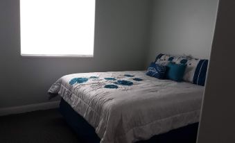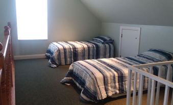 4 bedrooms: 2 single beds 2 queen beds and 1 king bed