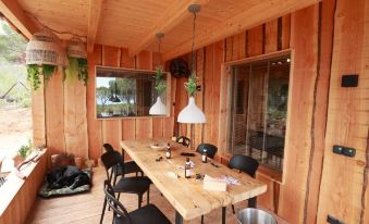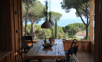 This cosy wooden nature cabin among the trees on a private property is located on the Maresme coast 40km from Barcelona city centre. Here you will find peace, nature, views of the Mediterranean Sea and in the distance from the terrace even the skyline of Barcelona.