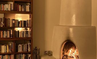 Open plan living area, fireplace and full kitchen peppered with art from around the world and loads of great books to read. Not suitable for mobility challenged though.