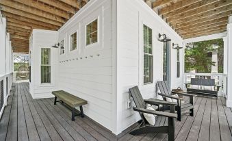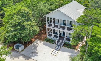 Outdoors 30A Blue has multiple porch options. The front porch is great for relaxing before and after the beach. The lower side porch has a large bench and hooks and serves as a perfect location for all of your beach gear. The back of the lower porch is the 'kids porch' with a fun hanging chair, an outdoor Connect 4 game, and outdoor Bags. The upper porches, both back and front, are wonderful for listening to the ocean and catching soft ocean breezes. At the back of the house you will find the grilling deck with a propane Weber grill, table for 4, outdoor shower, and beach chairs and umbrellas. We have provided 6 back-pack, beach chairs and 2 umbrellas for your use. At the front of the house, 30A Blue has driveway parking for 2 vehicles.