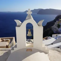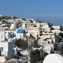 Just a few steps from the hotel entrance is the blue-domed church that once graced the cover of National Geographic. Santorini is truly a photogenic island. There's a steep slope at the entrance to the hotel, so be careful when driving. It's best to take a taxi to the hotel entrance, as there are plenty of parking spaces. Drink mineral water on the island; the tap water is a bit salty.
