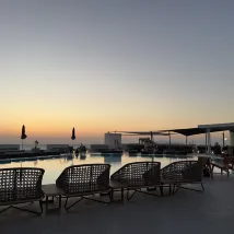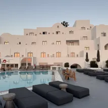 The hotel's facilities are outstanding. The swimming pool and loungers were incredibly comfortable, though the pool's daily opening hours were a bit short. The front desk kindly upgraded our room, and the 270-degree panoramic balcony was absolutely breathtaking. I would wholeheartedly recommend this hotel to anyone visiting Fira.