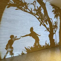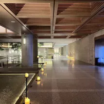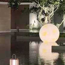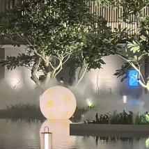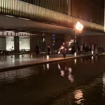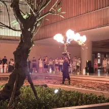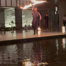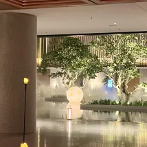 The evening ritual was also very nice. There was a thoughtful little detail of floating wish boats, and at night, a projector illuminated the tree and people's silhouettes in the lobby onto the wall, creating a beautiful atmosphere!