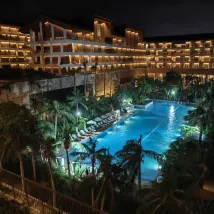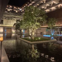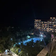 This hotel is really well-designed and nicely decorated. It's clean, and the night views are beautiful. They even have a special 'evening ceremony' performance, and it's super close to the beach. The breakfast is amazing, with a huge variety of options – perfect for a vacation. The only downside is that it's quite far from the city center, so having a car would be very convenient.