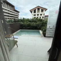 The location is a bit out of the way compared to other hotels, but it's very close to Linwang Night Market and Haichang Nightless City, which is great for evening meals. The decor is quite new, and the hotel is well-maintained with a minimalist style that I really like. A butler contacted me a day in advance, and the service was excellent with quick responses. The underground parking entrance is indeed quite narrow, so if your driving skills aren't up to par, you can use the above-ground parking, though spaces are limited. The outdoor pool is lovely, nestled among plants. You can cross the road to get to the beach, but there's only one access point; other exits are super far away. However, one morning after breakfast, I went to the gym to work out (using the fixed equipment normally) when a woman suddenly rushed in with her child, furious, demanding to know how long the gym had been open (it's a 24-hour self-service gym, mind you!). She claimed we were disturbing her child's online classes during the day and that we had kept them awake until the early hours the previous night (I'm guessing it might be because there's a bar next to the gym). I'd suggest that the hotel avoid assigning such rooms to guests who prefer quiet, especially during the off-season. Also, that woman was truly outrageous; other vacationing guests are not obligated to maintain absolute silence for you outside of quiet hours, and if you have a problem, you should contact the hotel, not yell hysterically at other guests.