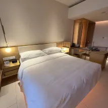 From check-in to check-out, the hotel staff was incredibly attentive and helpful throughout our stay. They proactively offered recommendations for local attractions and dining spots. The hotel's proximity to tourist sites made getting around super convenient, and finding places to eat was a breeze. Parking was quick and easy. Our room even had complimentary welcome fruits and bottled water. Any requests we had during our stay were addressed promptly and efficiently – they even helped us receive a package quickly! The overall experience was excellent. The sleep quality was outstanding; the soundproofing was fantastic. We had a very comfortable stay. The mattress and pillows were just right, not too soft and not too firm, and the bedding was soft and breathable. The blackout curtains were superb, and the excellent soundproofing meant we slept soundly until we naturally woke up. The room temperature was perfect, and the air was fresh. It was a complete escape from any sleep troubles.