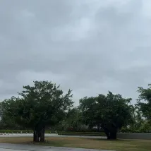 Because of the typhoon, there were leaves everywhere, but the staff were constantly cleaning up the natural debris and puddles on the ground.