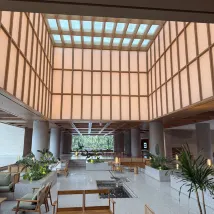 The room layout was excellent, with a wet/dry bathroom separation. The natural wood style felt very serene and clean. The designer-chic lobby on the first floor was perfect for photos. Breakfast offered a great variety, and the tropical fruits were incredibly sweet. The kids' club was massive, spanning thousands of square meters both indoors and outdoors, which my children absolutely loved. The Chinese restaurant had huge circular lights and an overall modern Chinese aesthetic, making for a very unique dining experience. The lobster was fresh too.
