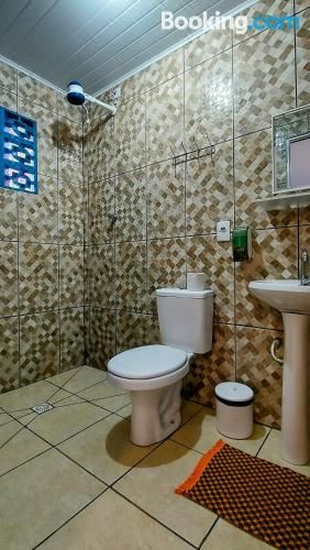 Instalações rústicas, tal como divulgado: uma chácara, com chalés bem construídos. Bem localizada, fica próximo ao centro, o que garante noites tranquilas. Alessandro (Sandro) é um ótimo anfitrião, nos recebeu muito bem, orientou e informou sobre os atrativos turísticos, além de roteiro gastronômico. Ótima opção para quem procura conforto e simplicidade. Café da manhã opcional (frugal).