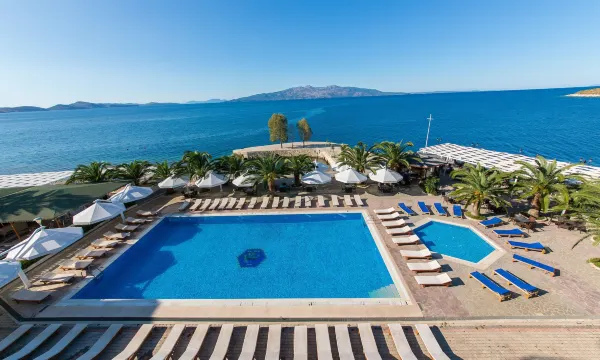 Great hotel if youre staying in Sarande. Great area and pool and right on the beach. Good breakfast. Nice and clean room.