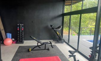 On the property, enjoy shared access to a full outdoor kitchen with built-in BBQ, a poolside game room, an Olympic-size swimming/bathing pool, and a fully equipped gym overlooking the jungle.
