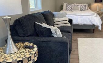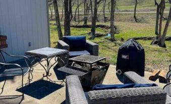 Kick back and relax in this calm, stylish space. Located 250 yards from Fort Scott Lake. Newly constructed bungalow with full kitchen, Queen size bed, Queen sofa with pull out memory foam bed, bath, outdoor patio with firepit & grill!About pets:Pets allowed: dogs and cats less than 50 lbs per pet (limit one pet total).About checkOut:Check out before 11:00 AM.About children:Children allowed: ages 0-17.About checkIn:Check in after 4:00 PM.About smoking:Smoking is not permitted.About minBookingAge:Minimum age to rent: 21.About events:No events allowed.