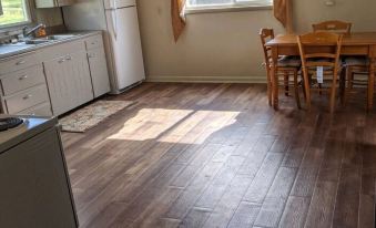 This rural Bayard, Nebraska cottage has a spectacular view of Chimney Rock from the deck or fire pit area at night. It has a spacious living room with couch to rest easy in. The kitchen is large and roomy with new appliances.