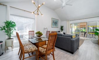 This villa has an open floor plan with vaulted ceilings and plenty of windows that allow natural light to brighten the rooms. The kitchen is fully stocked and ready for you to whip up a delicious low country meal. There is a full size stacked washer and dryer available for your convenience as well. Ceiling fans in the living room, sun room and both bedrooms provide added comfort if desired. The dining area is adjacent to the kitchen with table and seating for 6.
