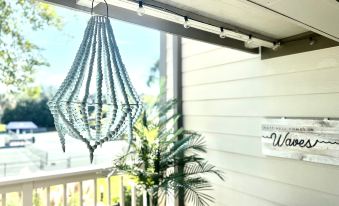 As you step into the property, guests will find a small screened in porch with comfortable seating, large ceiling fan, and TV – an ideal place to sip your morning coffee, read a book, or enjoy an evening cocktail.