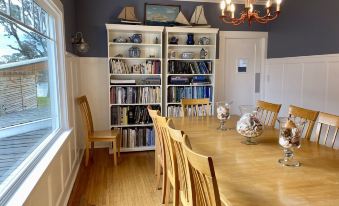 Watch the sun sparkle over the river from the deck or enjoy the large yard with a fire pit. Enjoy a book in the library, play board games or just relax in one of the four uniquely decorated bedrooms with sleeping accommodations for 12.