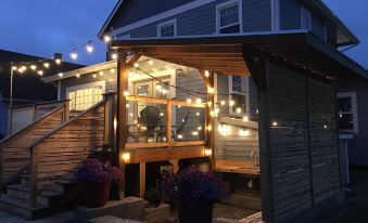 This house has beautiful plantings, an outdoor kitchen, and a large backyard leading down to the Necanicum river. There are many rooms for gathering or having some quiet time alone. Only 5 blocks to the center of town.