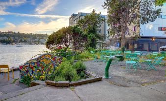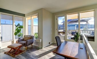 Outdoor Deck: Stunning views of Lake Union, outdoor seating, large umbrella / shed , and the perfect spot to watch seaplanes take off and land.