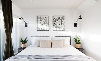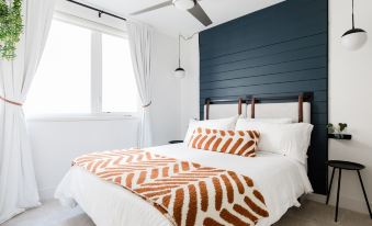 - Bdrm 2: Stylish modern boho vide, this room is furnished with a queen size bed, Saavta mattress and Brooklinen sheets. Side tables with access to outlets for cellphone, watches, etc... 42" mounted TV has streaming capabilities. Enjoy the organic feel of a hanging air-filtering plant.