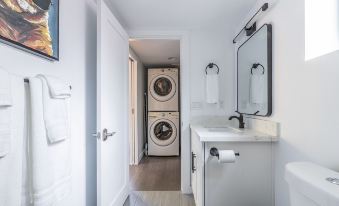 Bright and airy new construction standalone house complete with a sauna and a cold water drench shower. Featuring 1 bedroom / loft plus a pull out couch that converts to a queen size bed for additional sleeping. Full sized laundry, electric vehicle charging, and a driveway for 2 cars. The home is tucked away in a quiet Greenwood neighborhood with bars, restaurants, and grocery stores within walking distance.About pets:No pets allowed.About checkOut:Check out before 11:00 AM.About children:Children allowed: ages 0-17.About checkIn:Check in after 3:00 PM.About smoking:Smoking is not permitted.About minBookingAge:Minimum age to rent: 21.About events:No events allowed.