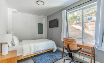 First Floor: Private bedroom and full bathroom—perfect for quiet workspace or guests seeking privacy.
