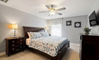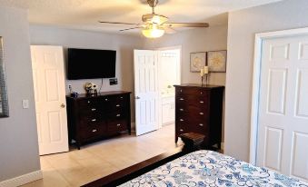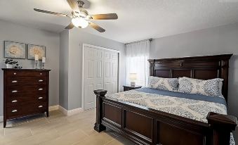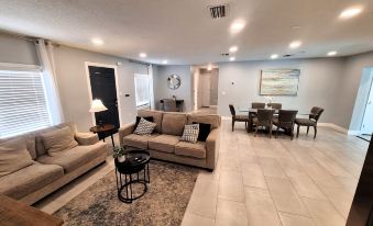 Spacious 3Br/2Ba ~ Pool and Lounge! *New Pool Heater Added January of 2025* This home features a King Master Suite. The spare King Bedroom and spare Twin Bed bedrooms have a shared Bathroom. Complimentary shampoo and body soaps are provided to our guests. There is a large open Kitchen, Living Room, and a separate family lounge with pool views. This split plan offers privacy for the master and the two additional bedrooms, perfect for couples or any multi-family arrangement. Enjoy the spacious fenced yard and grill!