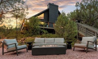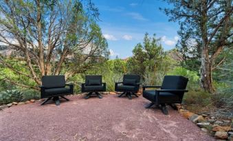 Onyx on the Creek offers private creekside access with an intimate patio overlooking the Oak Creek. Creek access is accessible via a steep staircase that also includes a patio overlooking the creek. While we strive to provide a safe and enjoyable environment, guests use the creek and staircase at their own risk. We are not liable for any injuries or accidents that may occur while accessing or using this area. We strongly encourage all guests to exercise caution and use appropriate safety measures.