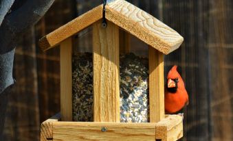 We offer lots of seating areas on the deck along with a large brick patio complete with chaise lounges, barbecue grill and cooler. and a rose garden. Take a walk down the steps to the large grassy area and enjoy a game of corn hole or just sit on the benches and enjoy the view while eating a piece of freshly picked fruit off the trees. This property has apple, peach, plum and fig trees and the fruit is delicious!