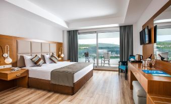 We visited your hotel for a family vacation last week. I would like to share our feedback by examining our experience from several perspectives. 1. Dining & Nutrition The hotel had a buffet restaurant and a poolside restaurant The poolside restaurant located near the coffee shop and bar only served set meals at lunch. The buffet restaurant had a specific theme almost every day, especially for dinner, and guests could choose from a wide variety of available foods. There was also a section for fruits and salads, as well as a dessert section. Overall, the buffet performed admirably. Furthermore, the hotel has an à la carte restaurant. Although we stayed for 6 nights, the hotel's policy grants a complimentary meal at the à la carte restaurant for stays longer than seven nights. This privilege was extended to us as well, and we dined one night at the Italian restaurant. We found the food to be excellent; we ordered steak and salmon, and the restaurant also provided us with dessert and appetizers. Additionally, the hotel had numerous bars located in the lobby, Sunset Bar and by the pools. It seemed that guests could order drinks virtually anywhere they wished. There were also kiosks for ice cream and waffles, which were very popular with children after swimming. 2. Rooms The rooms were sufficiently large and spacious.Our room had a view of both the sea and the water park, which was incredibly beautiful. Waking up to a view of the Aegean Sea from our bed was a wonderful feeling. Regarding housekeeping: during our 7-day stay, our room was cleaned only three times. Once, they came to clean at 3:00 PM while we were resting. Generally, the rooms were cleaned in the late afternoon. Since we often rested in the room at that time, it meant our room wasn't cleaned promptly. I suggest the hotel ask guests for their preferred cleaning time to avoid this issue. 3. Water Park & Pools The water park was open from 10:00 AM to 12:00 PM and from 2:00 PM to 5:00 PM.A significant strength was that I never had to wait in long queues for the slides during our entire stay. However, the many stairs were somewhat tiring, and I noticed that some older guests could not use the slides. I don't know if it's feasible, but installing a lift would greatly help guests access them more easily. Overall, the pools were incredibly and surprisingly clean, which is a credit to the hotel's staff. I personally saw the team meticulously cleaning the pools after 7:00 PM. We also never had to wait for a sunbed; they were always available whenever we went to the pool. 4. Animation Team The animation team put in a lot of effort.Every night, from around 8:45 PM to 9:15 PM, there was a children's disco with dancing, which I believe was very enjoyable for the kids. The main show ran from approximately 9:30 PM to 10:30 PM. I particularly enjoyed three of these nights: the Colombian show, the African show, and a fantastic show held on Friday night. However, I had heard about a beach fire show an