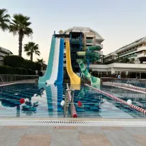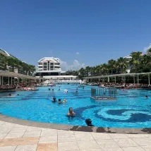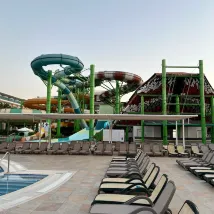 Отель не плохой.Лежаков на пляже вполне достаточно.Возле бассейна сложно найти свободные места.Еда неплохая ,ребенка 10 лет накормить было не сложно.Аквапарк отличный,так же присутствует сложность с лежаками.Питание нормальное.Развлекательные программы исключительно направлены на Европу и Турцию.Детская анимация хорошая.