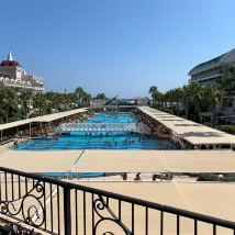 First off the food- Main restaurant dinner was of very poor quality and cold extremely cheap ingredients and mostly junkfood barely any fresh fruit or vegetables apart from apples and peaches and some cold what looked like frozen veg it was like a 2 star hotel in that regard the breakfast buffet was terrible freezing cold fried eggs raw boiled eggs and reformed meat idk what the meat actually was bright pink and dripping in grease no toasting machine no oats the so calked scrambled eggs were mixed with butter it was disgusting. The snack restaurants were better they had real meat kebabs chicken lamb and beef they also had some decent food in comparison to the main restaurant. Rooms were extremely dated and need a total revamp the shower wasn't working neither was the extractor. But the main complaint was the a la cart restaurants which was impossible to get into i stood in ques for 5 days in a row at 8 oclock in the morning at this bar only to be told they were either closed or full they are only open 2 days a week every other hotel you book at reception but not here ohh no that would be to easy. Also the wifi is not fit for purpose all in all a terrible experience which cost over £3000