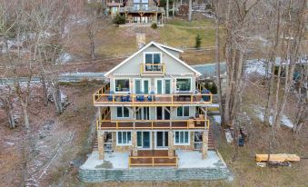 Spread over four levels, this home has something for everyone. The two middle levels both offer wrap-around decks for full viewing pleasure while the lowest level offers an outdoor patio area and the upper level offers a private balcony. Off the main-level deck, enjoy a gas fire table in the evenings while watching the sunset.