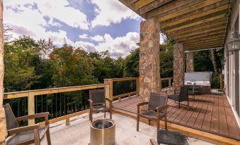 The first lower level has another cozy living room with a beautiful stone wood burning fireplace and HD TV. This floor is also equipped with a kitchenette, pool table, and a queen bedroom with an attached bathroom.