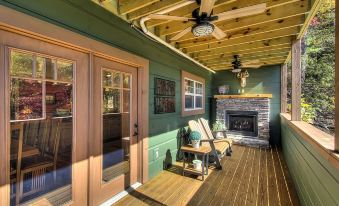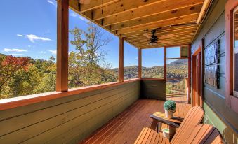 Take the steep mountain driveway to experience this majestic home which features Mission Style furniture and Tiffany style lamps. The interior gives a nod to Frank Lloyd Wright and makes for one of the most unique and gorgeous Lodges in the Great Smoky Mountains. Each evening reveals stunning sunsets as you soak up the fresh mountain air, and then, once the sun goes down, the inside of the Lodge comes alive with conversation and relaxing contentment.