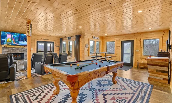 Incredible Views | WIFI | Hot Tub with Views | Outdoor Fire Pit | Claw Foot Pool Table | Custom 1000+ game Arcade | Beautiful Foosball Table | Stocked board and card game cabinet | Theater Seating for 8 | Outdoor Grill with Propane Included | 2 Large decks with Plenty of seating | HexClad Pots and Pans | Fully Stocked Kitchen with Ninja Air Fryer