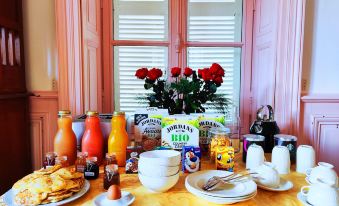 Une jolie maison ancienne à l’allure d’un manoir et à la décoration harmonisée et réussie sur le thème début du vingtième siècle. Chambre très grande. Salle de bains très grande avec douche italienne spacieuse. Jolie décoration partout. Accueil attentionné, gentil, top ! On peut profiter du parc aux beaux jours grâce aux bains de soleil à disposition. Parking dans le parc. Petit déjeuner impeccable varié, abondant, avec toutes sortes de choses maison. on a adoré ! merci à nos hôtes