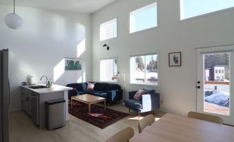 Kenai Fjords Lupine Lodge is a 2 bedroom, 3 bath modern Scandinavian inspired space focused on closeness to nature and simple beautiful design. From the living room watch the light shift through the day on the peaks of the Kenai mountains. From the deck sit and enjoy the view of Resurrection Bay. With large windows that all face out into beautiful natural spaces- the space is bright, clean, and less than a mile from the gateway into the Kenai Fjords National park.