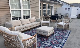 Experience Shallotte like a local in this 5-bedroom house. With 1 king bed, 2 queen beds, 6 twin beds, and 1 child bed, this beautiful property offers plenty of space for guests. Enjoy the convenience of amenities like AC, a washing machine, heating, and WiFi. The 3 bathrooms feature both showers and bathtubs for your comfort. There is a fully fenced in back yard availble all year and an inground outdoor pool available during your stay for the months May-September. Your stay here will be nothing short of terrific. Feel free to reach out to us during your stay - we're happy to suggest local spots to check out.About pets:Pets allowed: dogs less than 50 lbs per pet (limit one pet total).About checkOut:Check out before 11:00 AM.About children:Children allowed: ages 0-17.About checkIn:Check in after 4:00 PM.About smoking:Smoking is not permitted.About minBookingAge:Minimum age to rent: 21.About events:Events allowed: family gatherings and birthday parties.Maximum event attendees: 30.