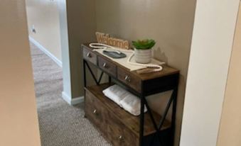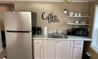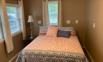 This Shallotte house has1 cozy bedroom with a full bed and sitting area. The bedroom also has room darkening curtains and extra linens. This quaint property features TV, Wi-Fi, AC/Heat and a kitchenette. The kitchenette includes a full size refrigerator, a griddle, coffee pot, microwave, and an air fryer. The bathroom offers towels, hair dryer and shower. Additionally, there is a living room space with TV, DVD player, movies, and a futon. Kickback, relax, and enjoy everything Shallotte has to offer. The sidewalk right beside the house leads down to the Riverwalk where there are swings, and picnic tables. Across the street is Mulberry Park with a playground and concerts in the park. Certain times of year they also have the Farmers Market in the park. There are lots of restaurants within walking distance and a laundromat right across the street.