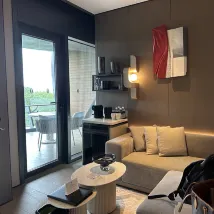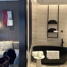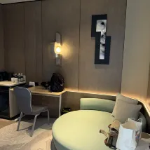 I arrived at the hotel around 11 PM on the day of check-in. There was no concierge at the entrance, and since my child was asleep, it was a bit inconvenient to handle the luggage. Luckily, I found a staff member inside who helped me, and their attitude was very good. The check-in process wasn't very quick; it wasn't the type where you pay upon departure, so a deposit was required beforehand, which took some extra time. After checking in, I wanted some toiletries, but the front desk and concierge department didn't answer the phone when I called. Other aspects were acceptable. It was very inconvenient that there was no power outlet near the sink. Also, the lights in the small living room and bedroom were on the same circuit, so they couldn't be controlled separately, which wasn't very reasonable.